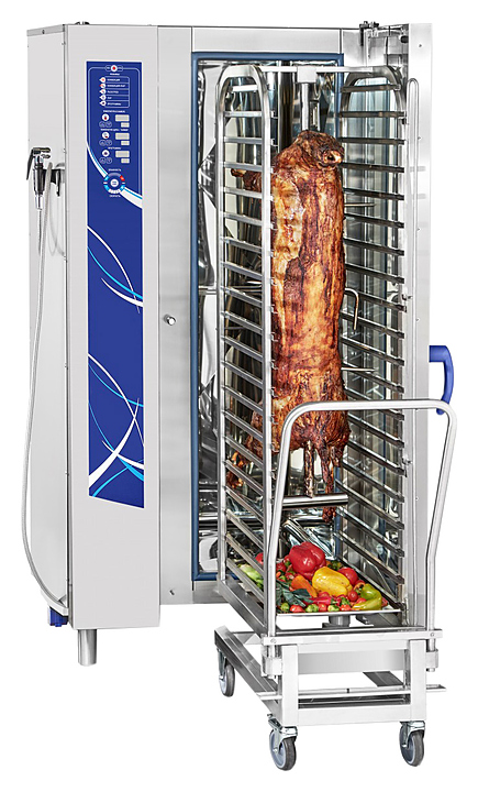 Пароконвектомат Abat ПКА 20-1/1ПМ2-01 предназначен для обжаривания, приготовления на пару, бланширования, запекания и других видов тепловой обработки продуктов на предприятиях общественного питания и торговли. Оборудование заменяет сразу несколько видов приборов: плиту, конвекционную печь, жарочный шкаф, духовку, опрокидывающуюся сковороду, пищеварочный котел, фритюрницу и др. Приготовленные в пароконвектомате блюда сохраняют все полезные вещества. Модель оснащена подсветкой, легкосъемным жировым фильтром, душем для мойки и дверью с двойным остеклением.