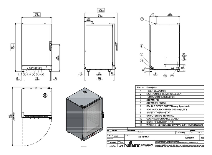 Пекарский пароконвектомат Tatra TBI 10 M.V предназначен для выпекания кондитерских и хлебобулочных изделий из свежего и замороженного теста с применением режимов сочетания конвекции и пара. Модель оснащена электромеханической панелью управления, инжекторным пароувлажнением, галогеновым освещением камеры, закругленными углами для легкой очистки, таймером и 3 реверсивными вентиляторами для равномерного приготовления. Двойное жаростойкое стекло сокращает теплопотери и защищает персонал от ожогов. Корпус и камера выполнены из нержавеющей стали.