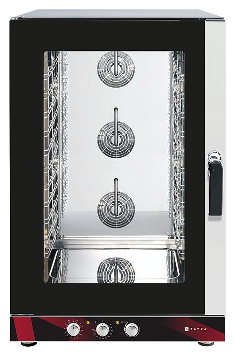 Пароконвектомат Tatra TPI 12 M.V предназначен для обжаривания, приготовления на пару, бланширования, запекания и других видов тепловой обработки продуктов на предприятиях общественного питания и торговли. Модель оснащена универсальными направляющими под гастроемкости GN 1/1 и листами для выпечки 600×400 мм, 3 реверсивными вентиляторами, галогеновой подсветкой и таймером от 0 до 120 минут. Корпус и камера выполнены из нержавеющей стали.