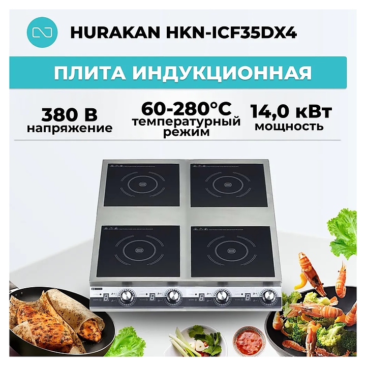 Индукционная плита Hurakan HKN-ICF35DX4 предназначена для приготовления блюд в наплитной посуде на предприятиях общественного питания и торговли. Индукционная конфорка включается сразу после установки на нее посуды и выключается, когда ее убирают, за счет этого сокращается энергопотребление и улучшается микроклимат в кухонном помещении. Модель оснащена цифровой панелью управления и 4 активными джойстиками. Корпус выполнен из нержавеющей стали.
