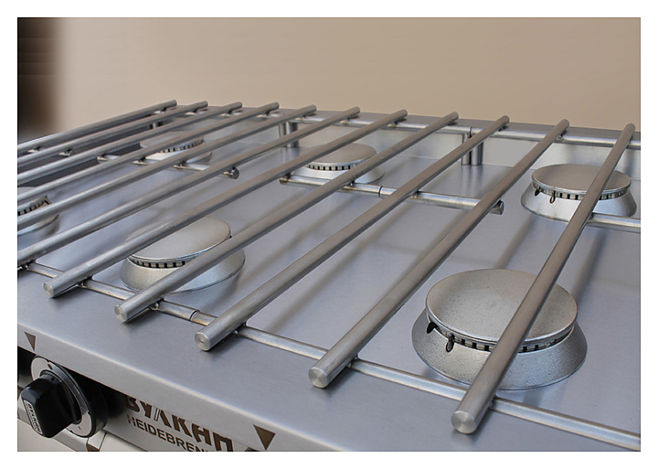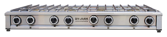 Газовая плита Вулкан ПРГ-IIA-8М Slim предназначена для приготовления первых, вторых и третьих блюд в наплитной посуде на предприятиях общественного питания и торговли. Модель оснащена газ-контролем. Корпус и решетки выполнены из нержавеющей стали, газовые горелки — из латуни.