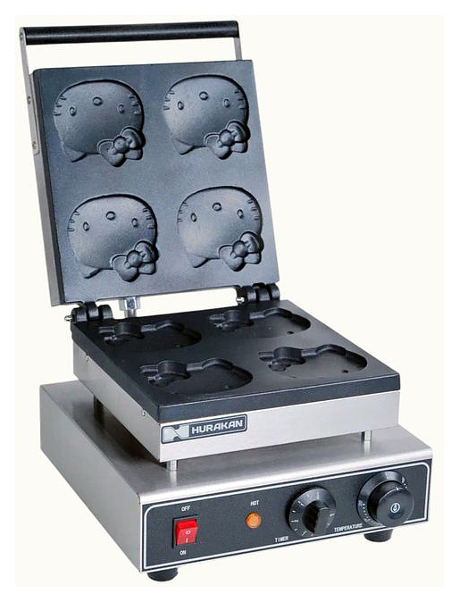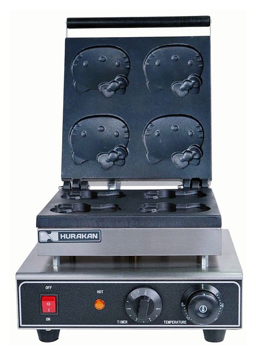 Вафельница Hurakan HKN-GES13 HELLO KITTY используется на предприятиях общественного питания и торговли для приготовления вафель в форме Hello Kitty. Модель оснащена регулируемым термостатом. Корпус выполнен из нержавеющей стали, рабочая поверхность — из чугуна с антипригарным покрытием.