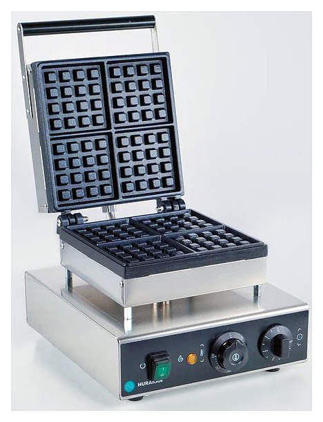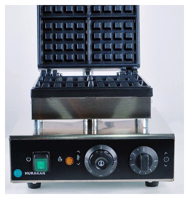 Вафельница Hurakan HKN-GES2M используется на предприятиях общественного питания и торговли для приготовления бельгийских вафель квадратной формы. Модель оснащена регулируемым термостатом. Корпус выполнен из нержавеющей стали, рабочая поверхность — из чугуна.