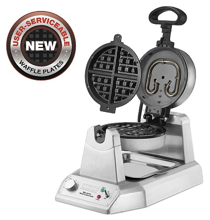 Вафельница Waring WW180XCE используется на предприятиях общественного питания и торговли для выпекания бельгийских вафель. Рабочие поверхности покрыты тройным антипригарным покрытием для простого извлечения готовых вафель и легкой очистки пластин. Вмонтированные в пластины нагревательные элементы обеспечивают точный контроль температуры и равномерное распределение тепла.