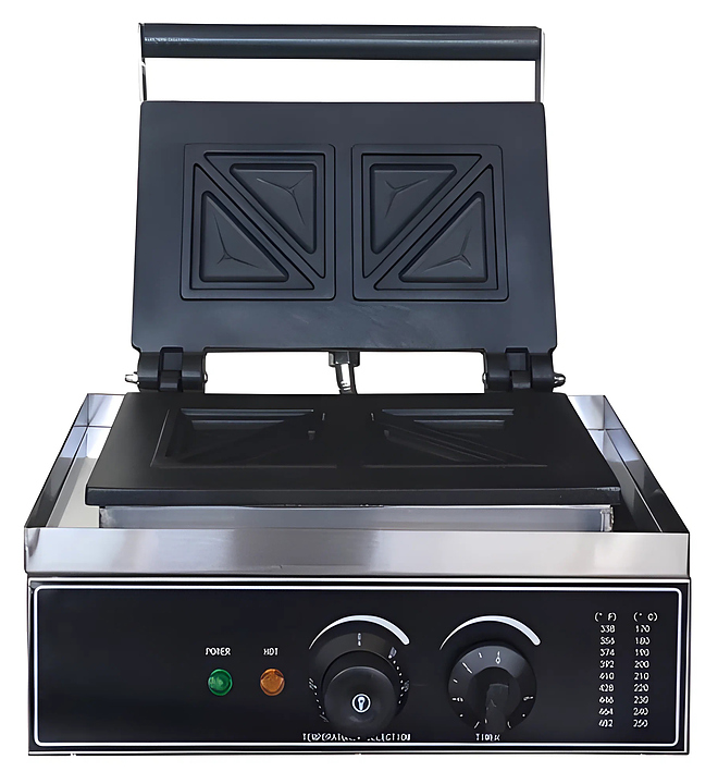Вафельница Hurakan HKN-GES14 SANDWICH используется на предприятиях общественного питания и торговли для приготовления вафель в форме треугольного сэндвича. Модель оснащена регулируемым термостатом. Корпус выполнен из нержавеющей стали, рабочая поверхность — из чугуна с антипригарным покрытием.