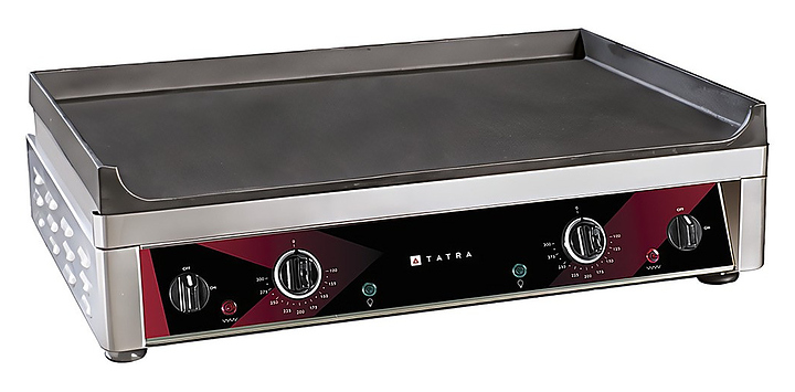 Жарочная поверхность Tatra TGP 6845 S предназначена для жарки мяса, птицы, рыбы, овощей и быстрого разогрева полуфабрикатов на предприятиях общественного питания и торговли. Модель оснащена электромеханической панелью управления с терморегулятором и индикаторами питания и нагрева, системой независимого управления каждой зоной нагрева и емкостью для сбора жира. Корпус выполнен из нержавеющей стали.