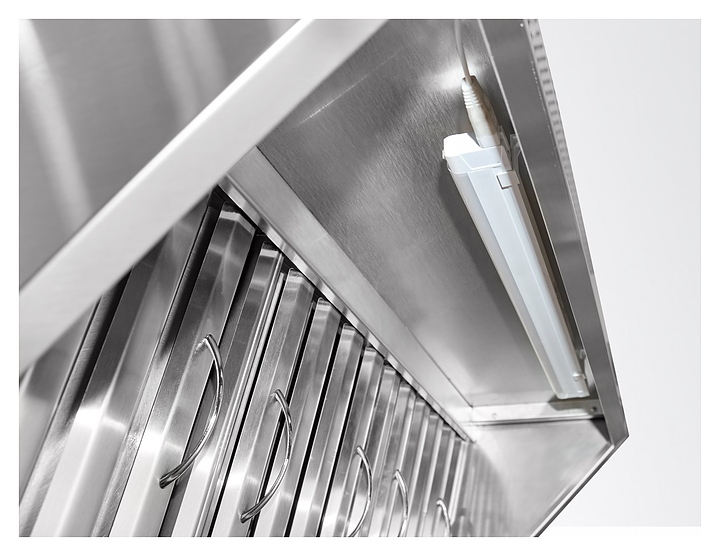 Вытяжной зонт Abat ЗВВ-800П предназначен для очистки воздуха от паров жира, масла и воды на предприятиях общественного питания и торговли. Модель состоит из 2 основных частей: каркаса теплообменника и воздухозаборника. В каркасе теплообменника установлен слот с 3 теплообменниками, угольные и лабиринтные фильтры и всасывающий вентилятор. Зонт подсоединяется к пароконвектомату с помощью кабеля питания и фиксируется с помощью винтов М5 к крыше пароконвектомата. Корпус выполнен из нержавеющей стали AISI 304.