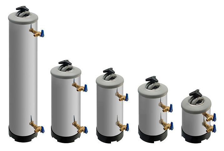 Умягчитель воды содержит в себе синтетическую ионную смолу, которая нейтрализует ионы магния и кальция, а затем заменяет их на ионы натрия. Его конструкция в виде цилиндрического сосуда изготовлена из нержавеющей стали. Он имеет герметичную крышку.