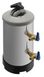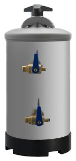 Умягчитель воды содержит в себе синтетическую ионную смолу, которая нейтрализует ионы магния и кальция, а затем заменяет их на ионы натрия. Его конструкция в виде цилиндрического сосуда изготовлена из нержавеющей стали. Он имеет герметичную крышку.